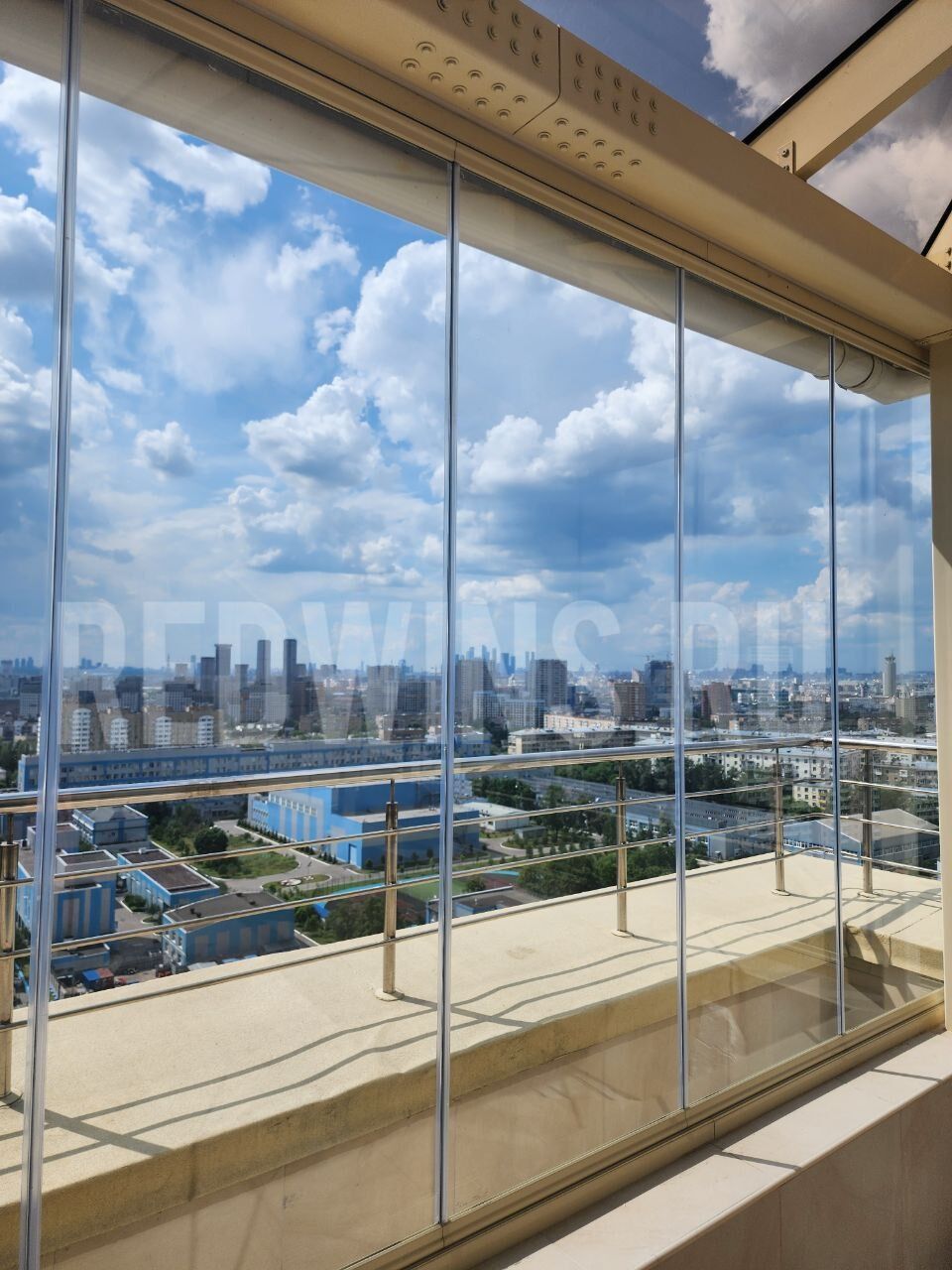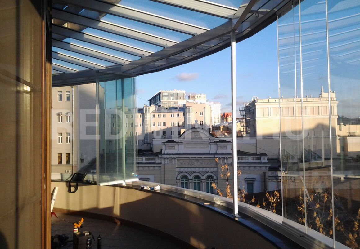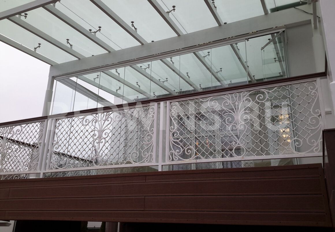 Безрамное остекление балкона. Стеклянная кровля.