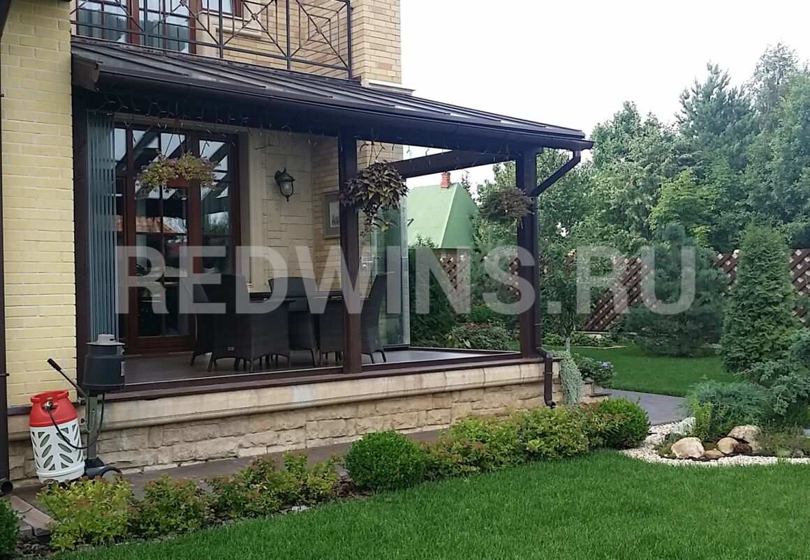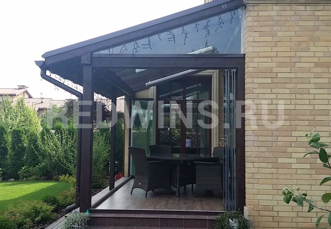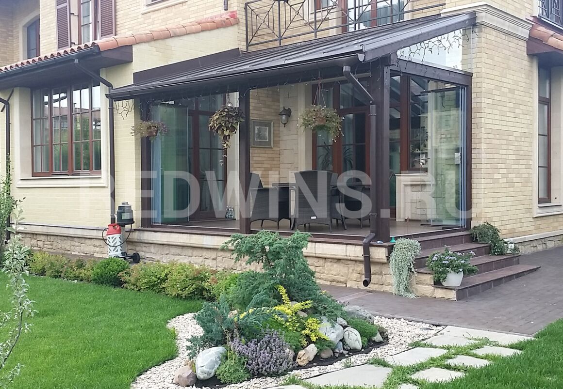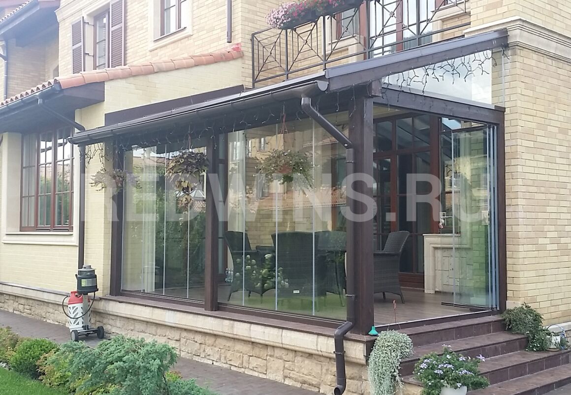 Безрамное остекление террасы. Стеклянная кровля.
