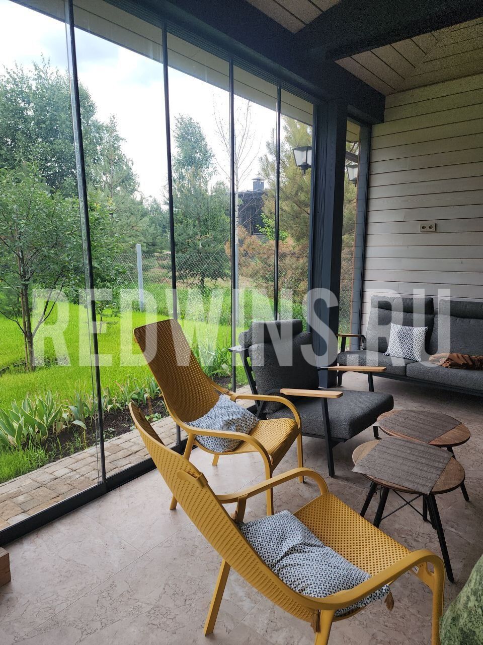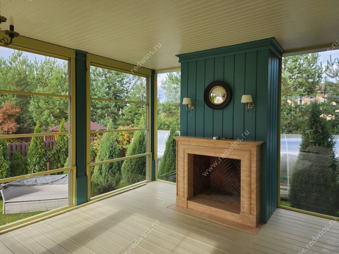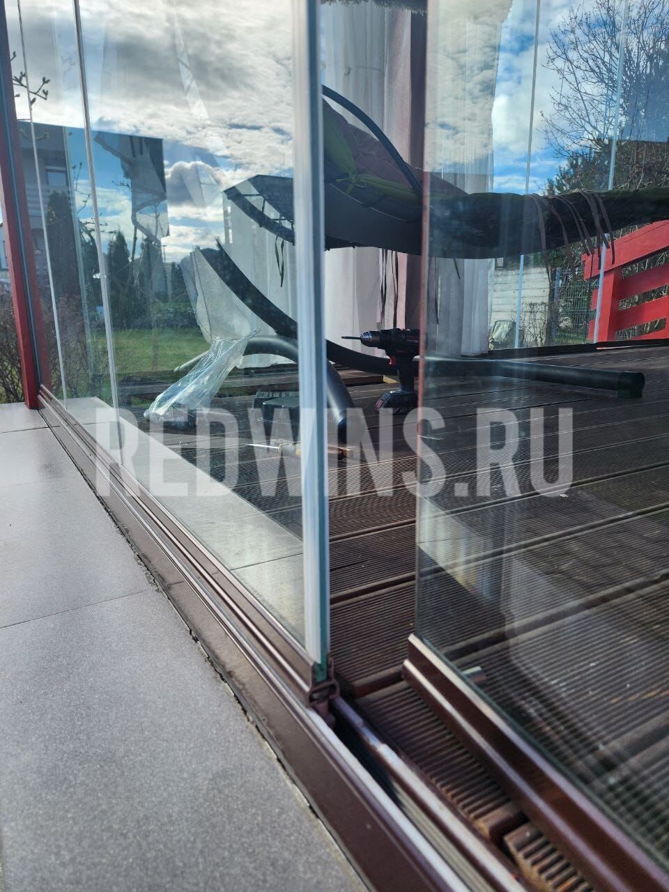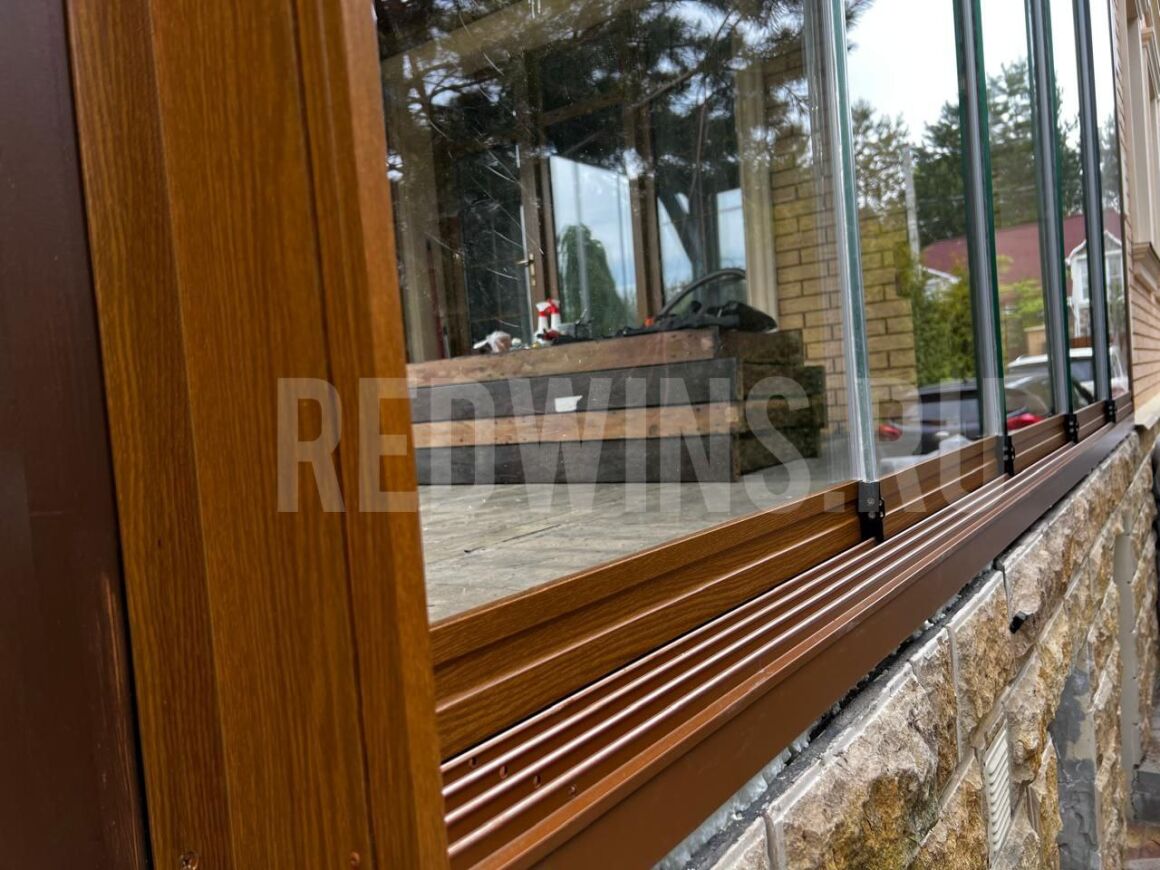 Безрамное остекление террасы системой Слайд. Покрытие декорал, сублимация
