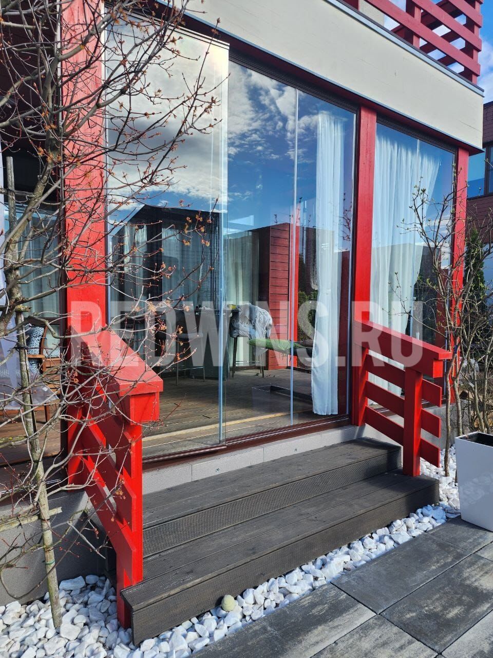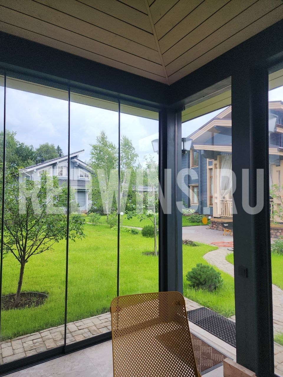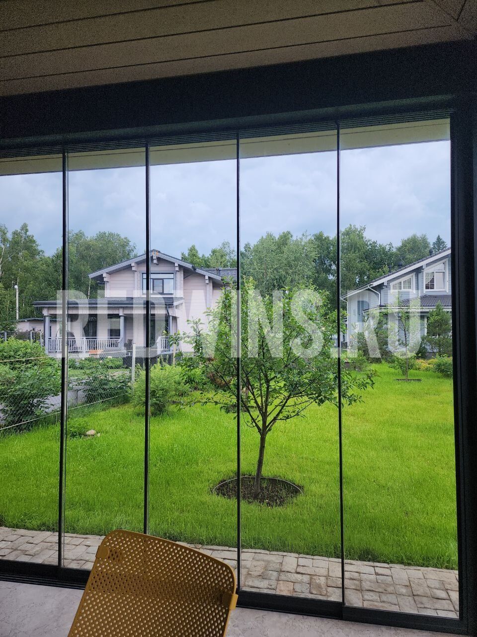 Безрамное остекление террасы системой Слайд. Покрытие декорал, сублимация