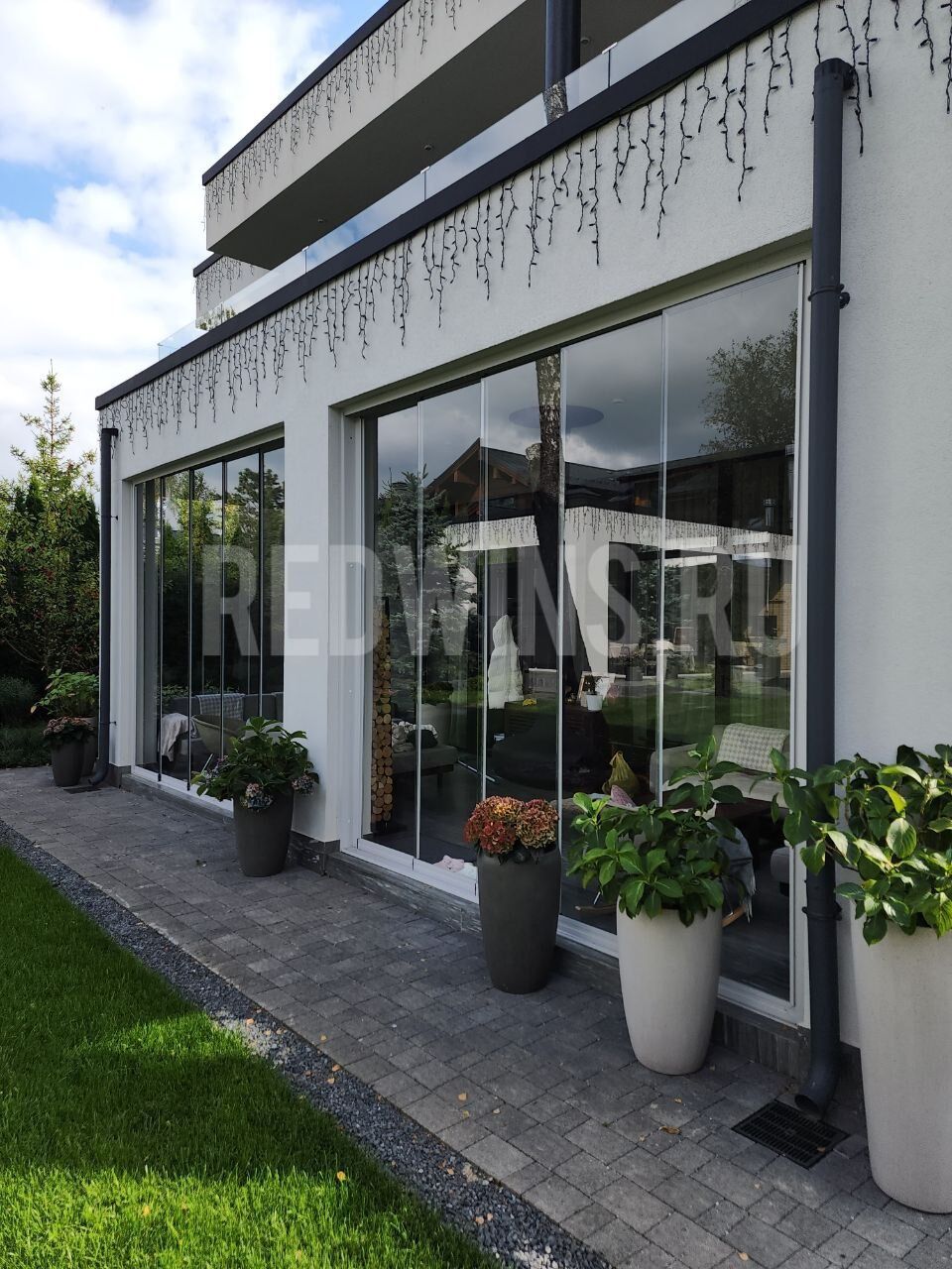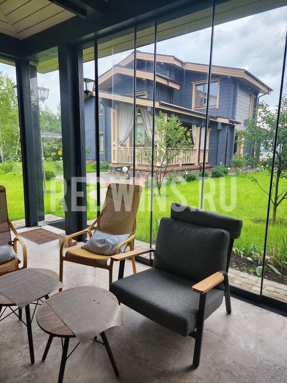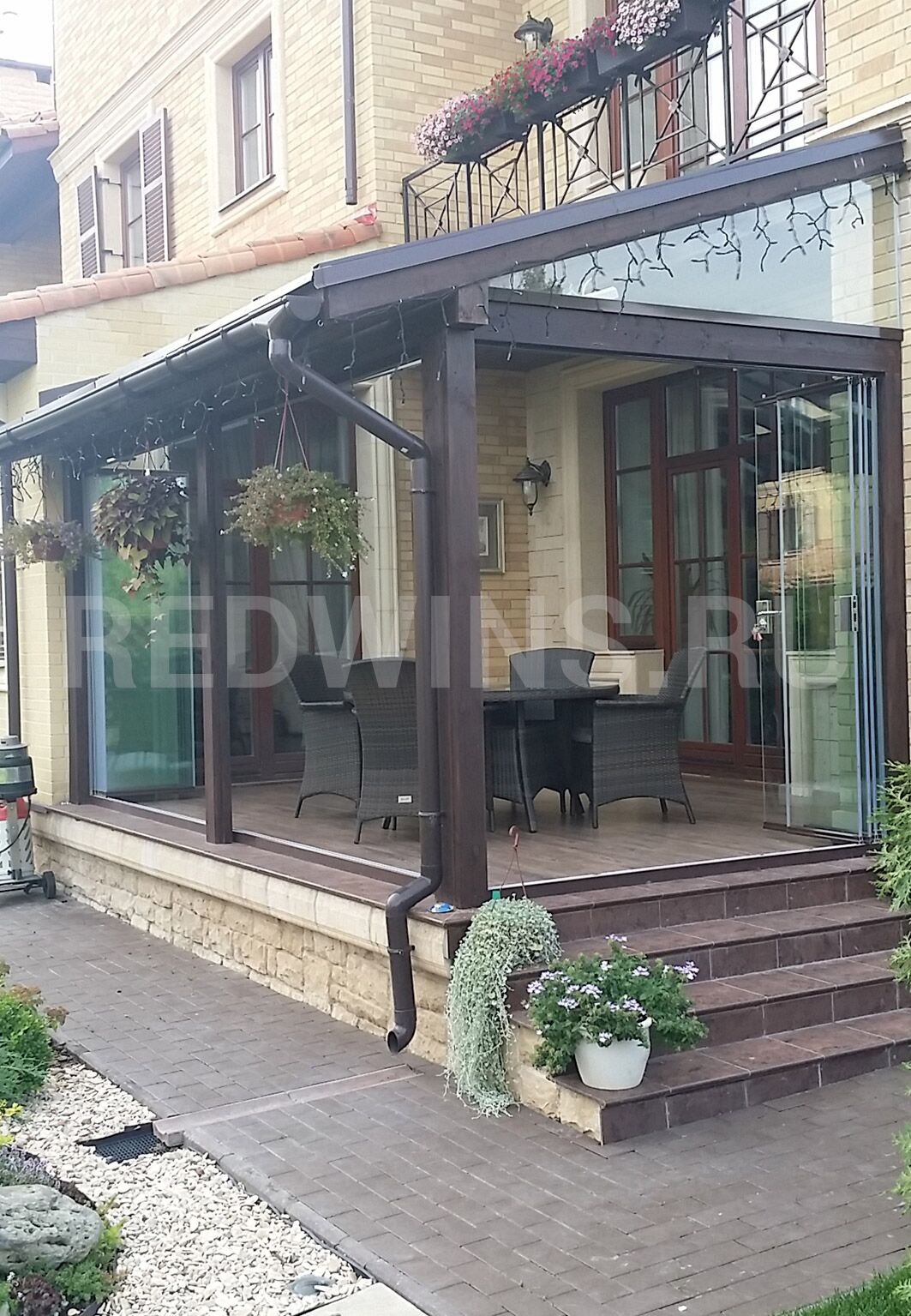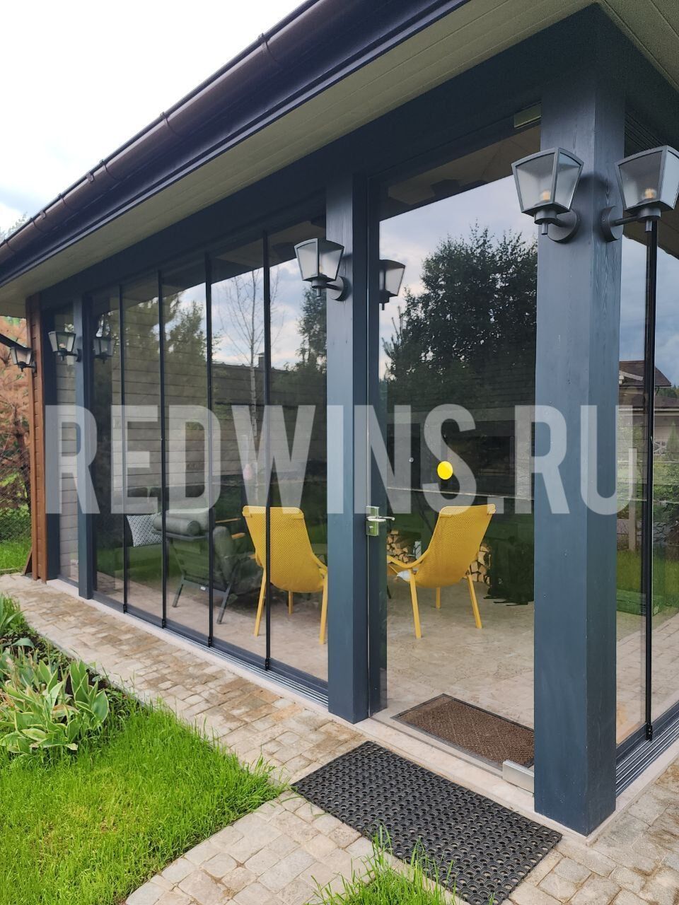 Безрамное остекление террасы системой Слайд. Покрытие декорал, сублимация