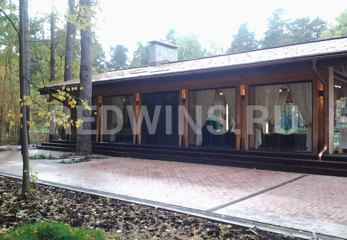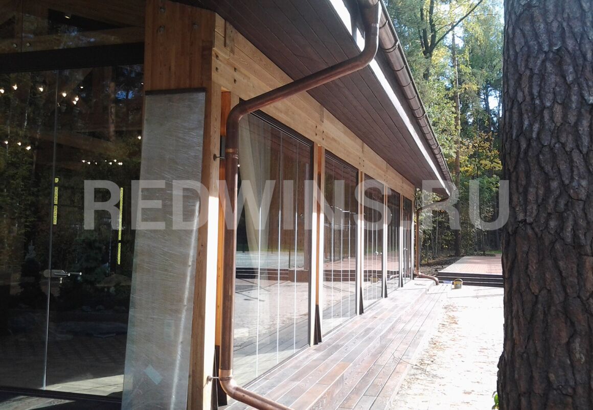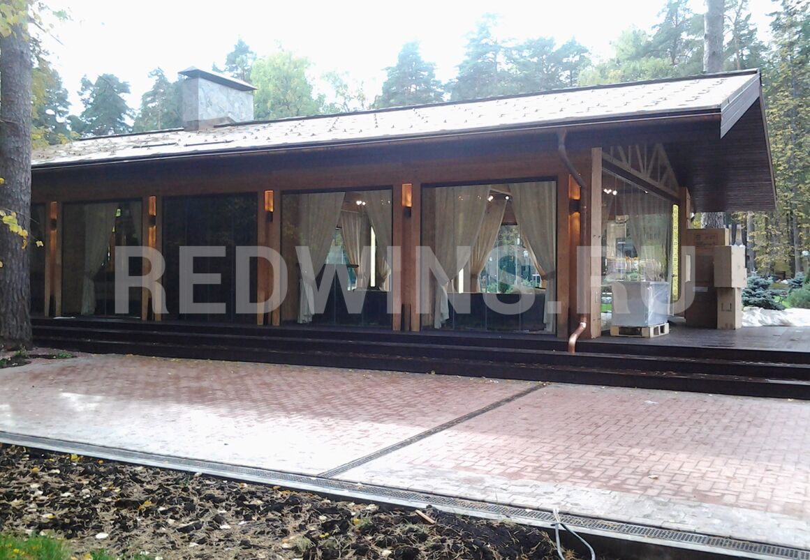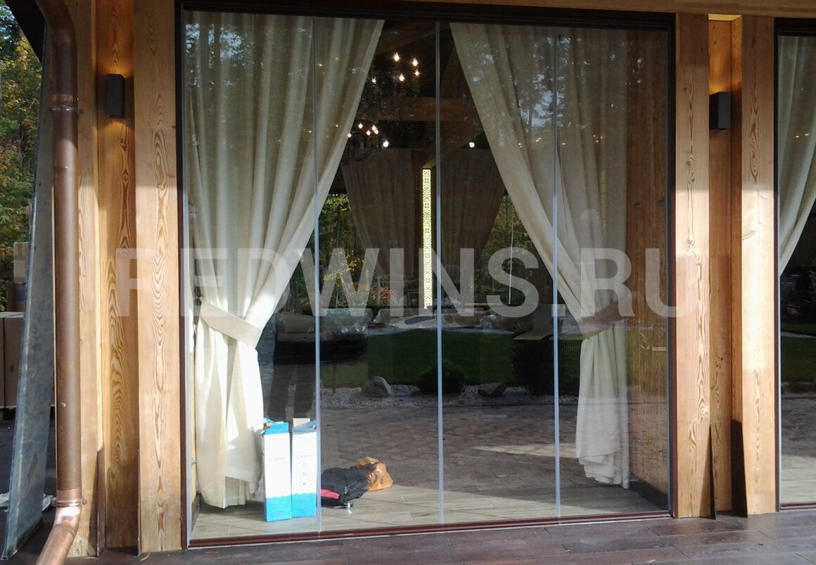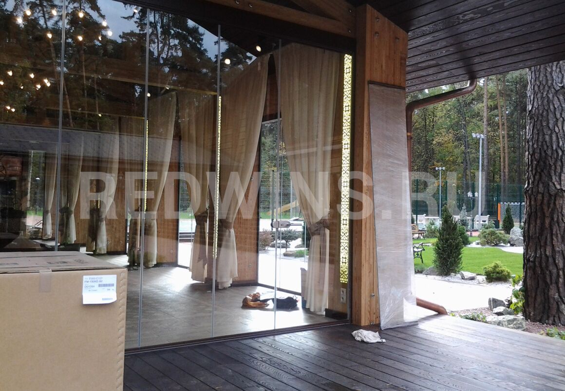 Безрамное остекление беседки из клееного бруса.