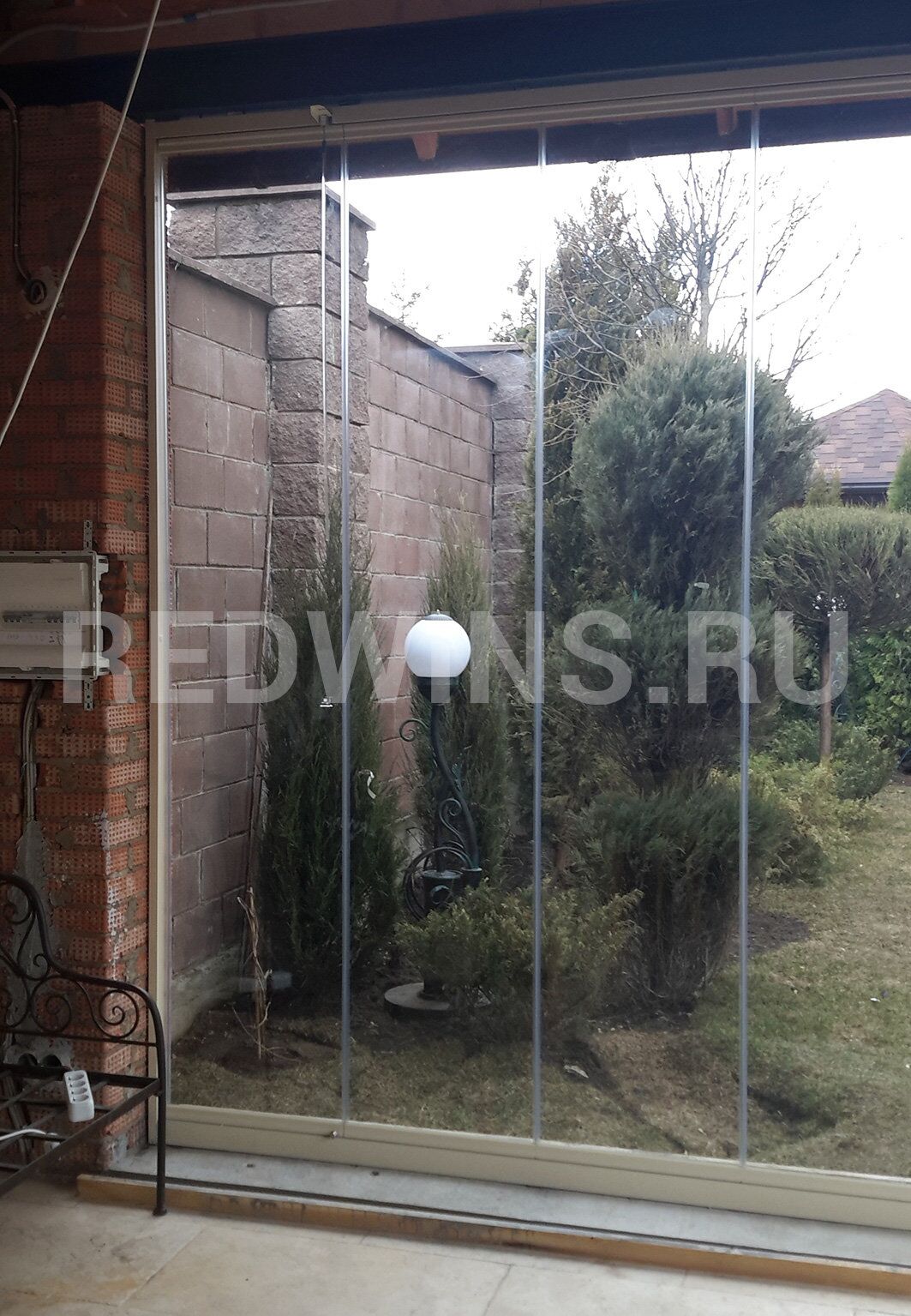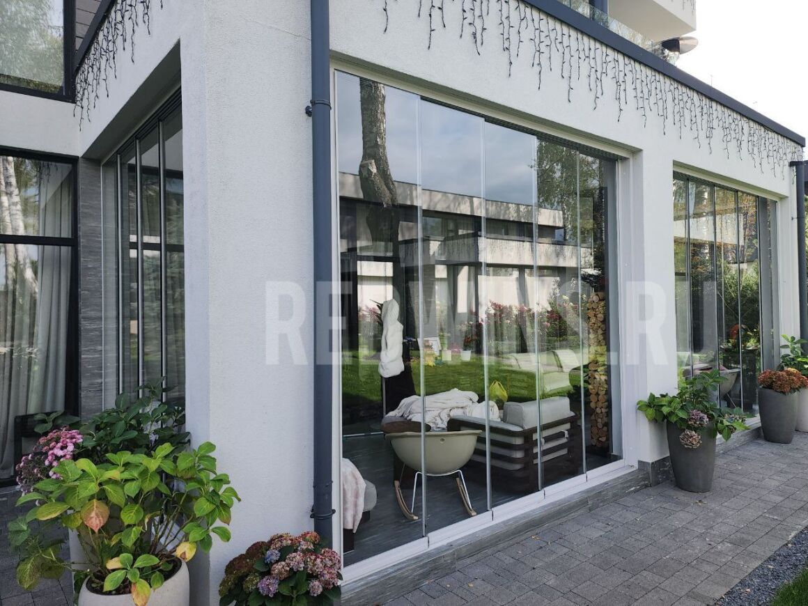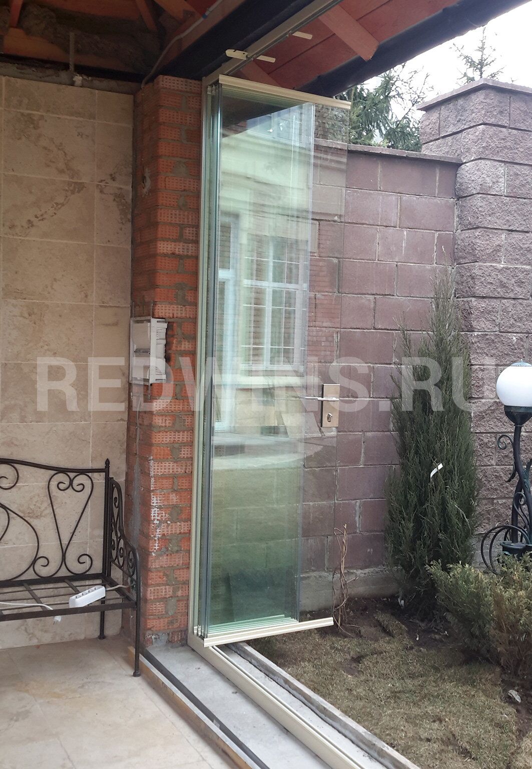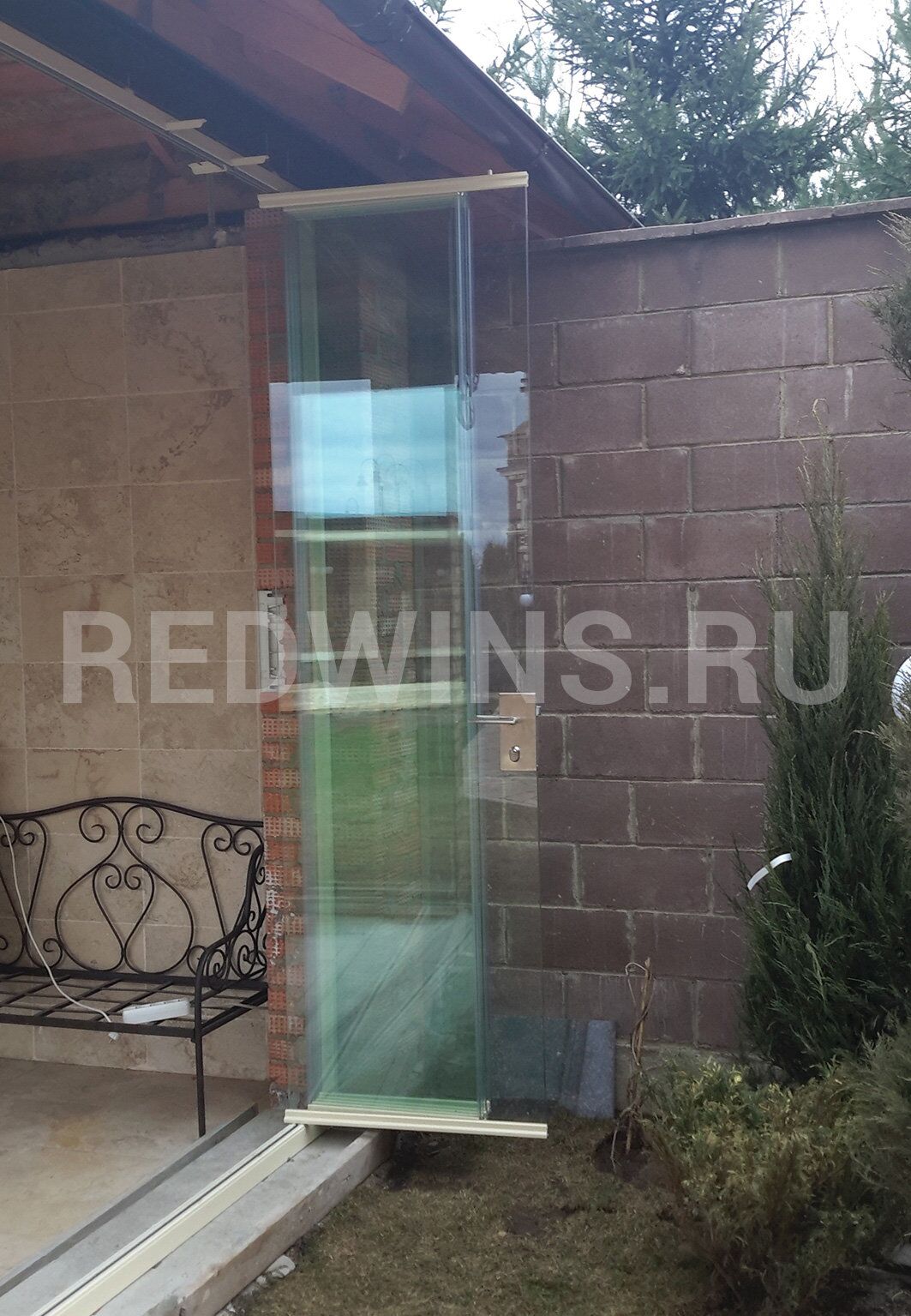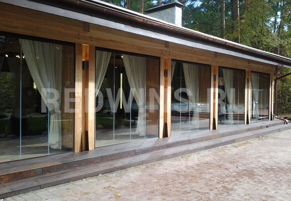 Гильотинное и безрамное остекление с дверью и замком террасы.