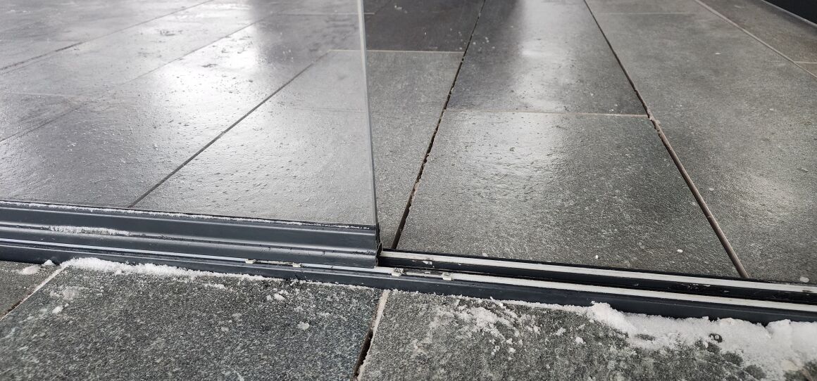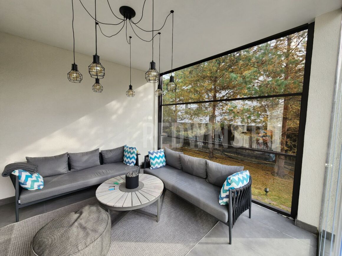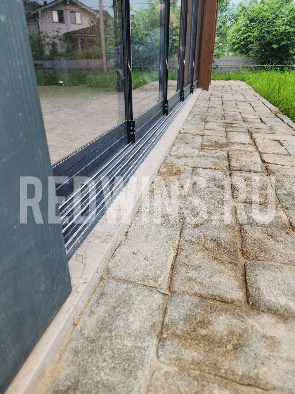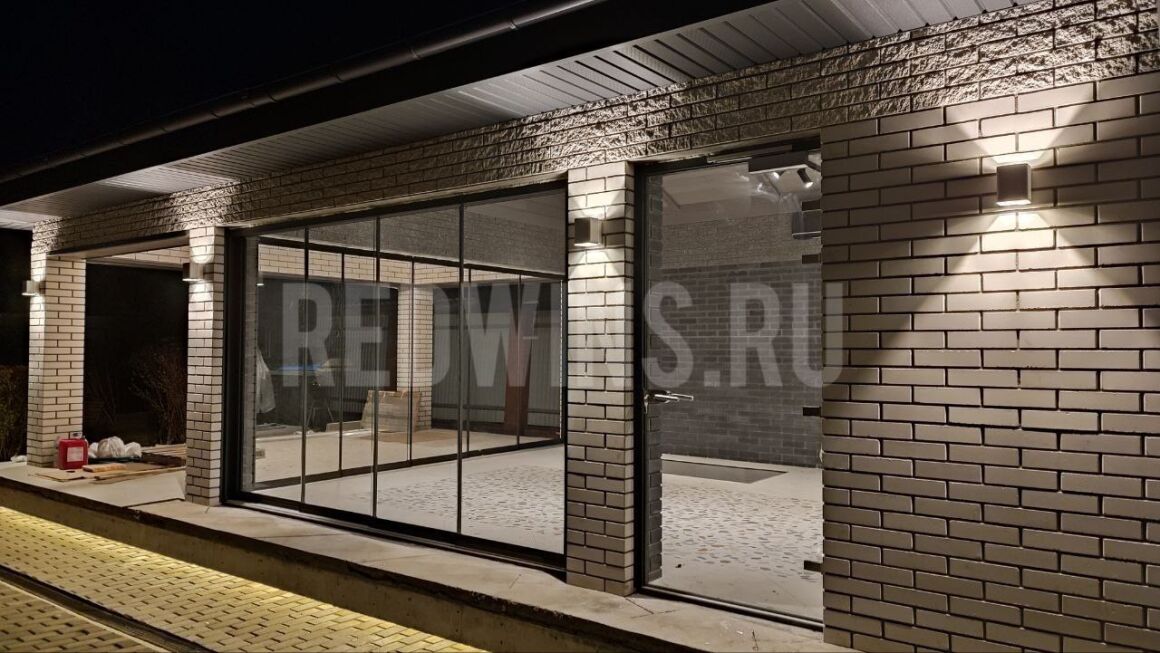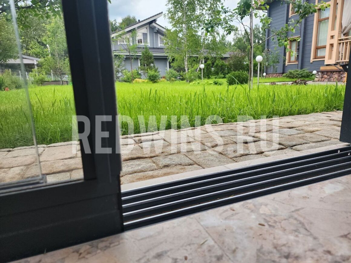 Гильотинное и безрамное остекление с дверью и замком террасы.