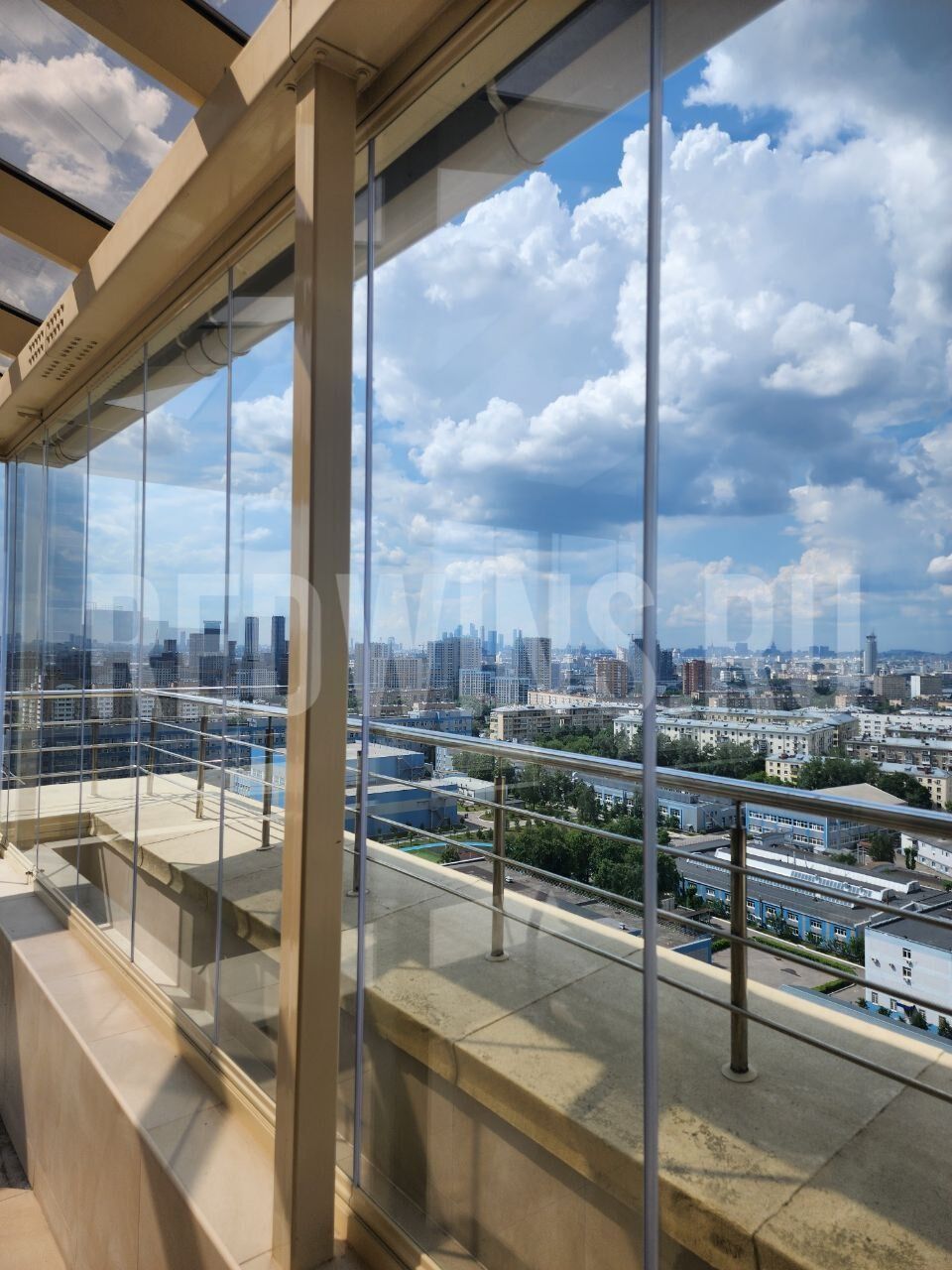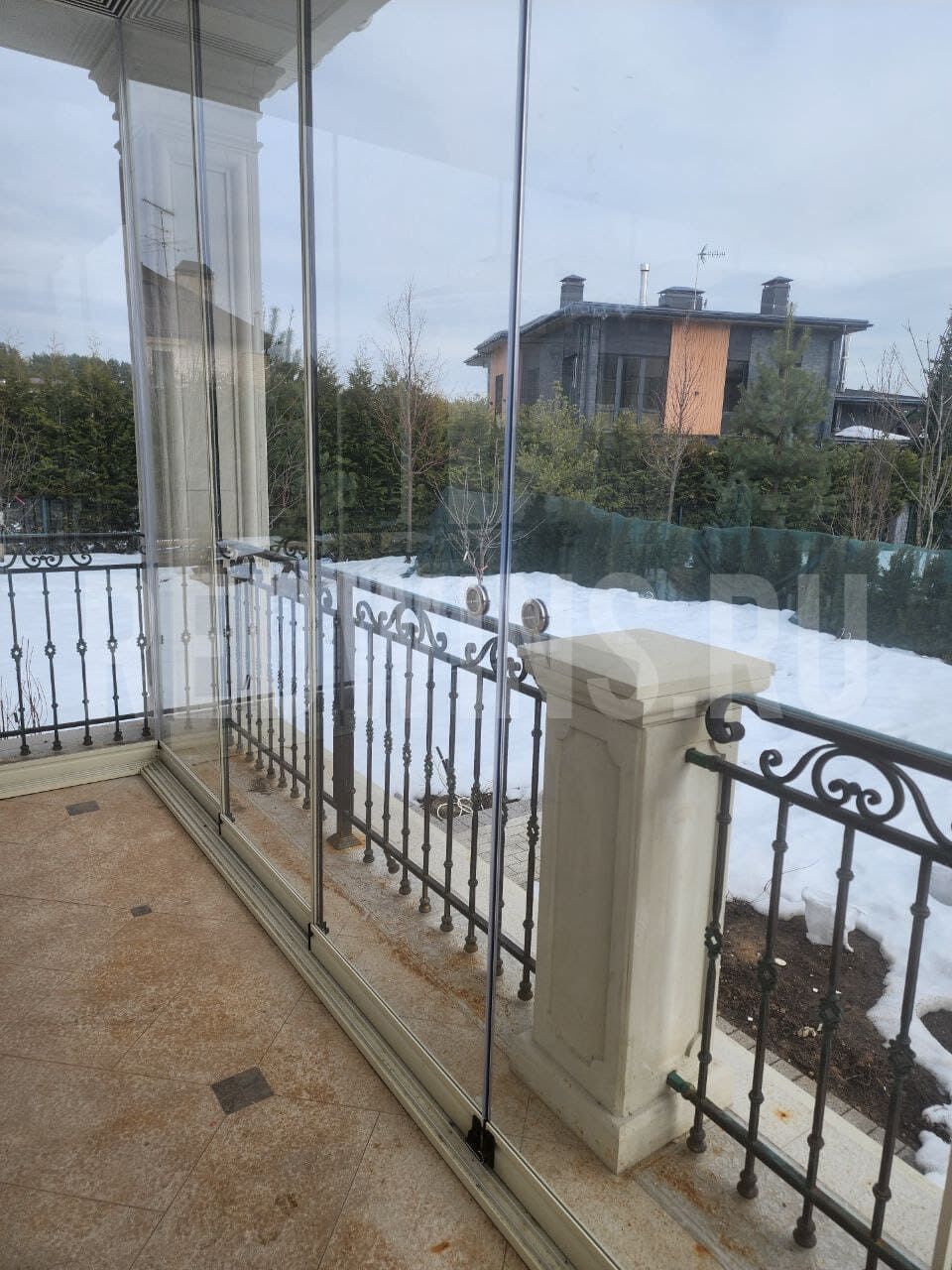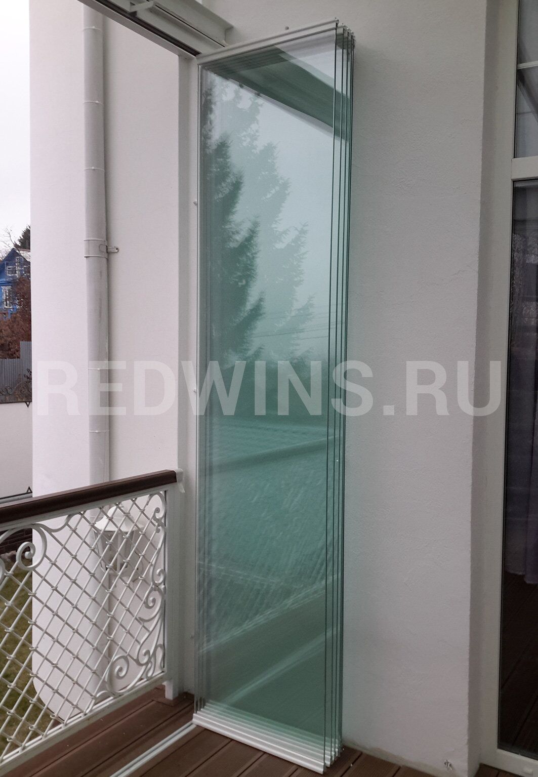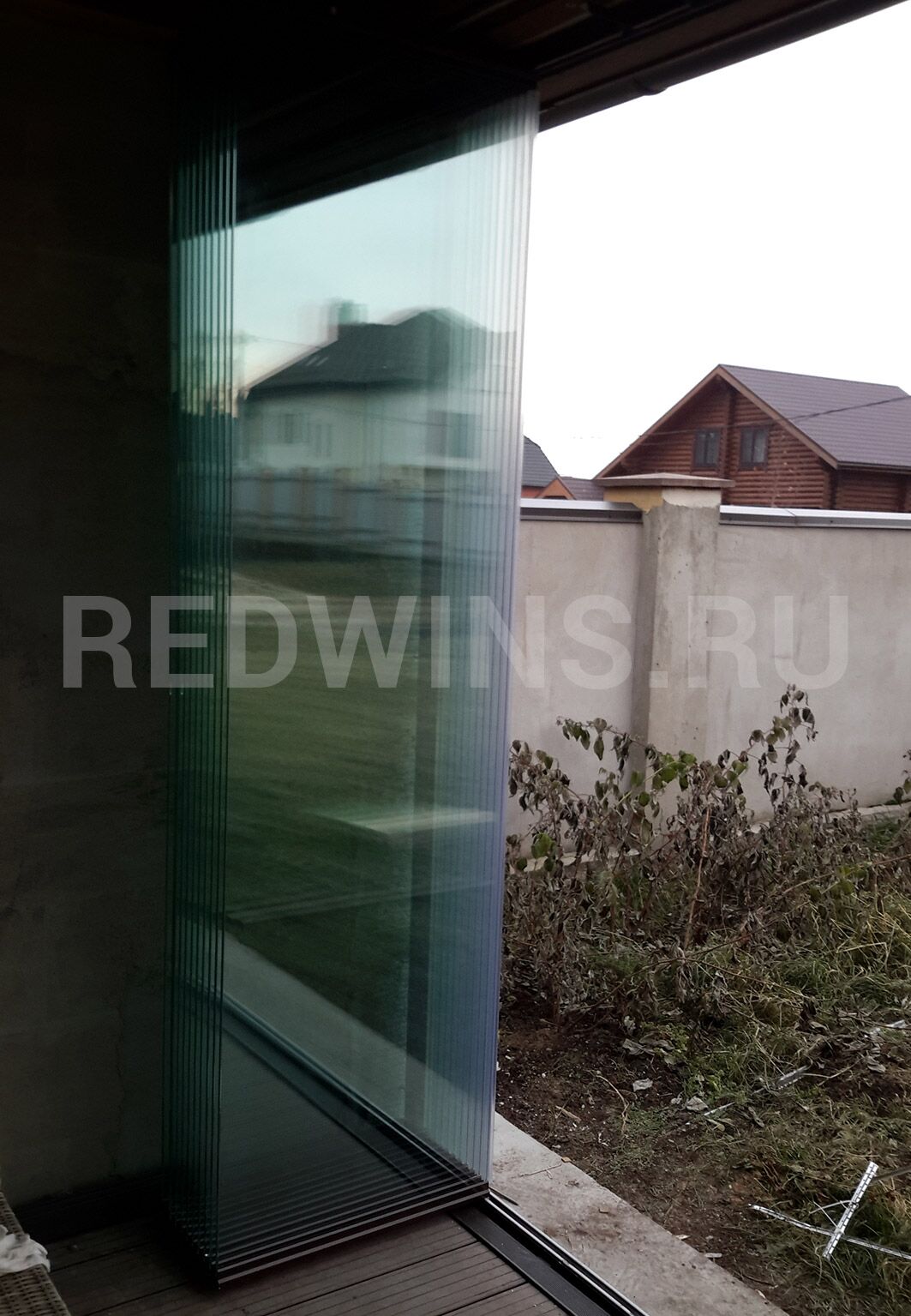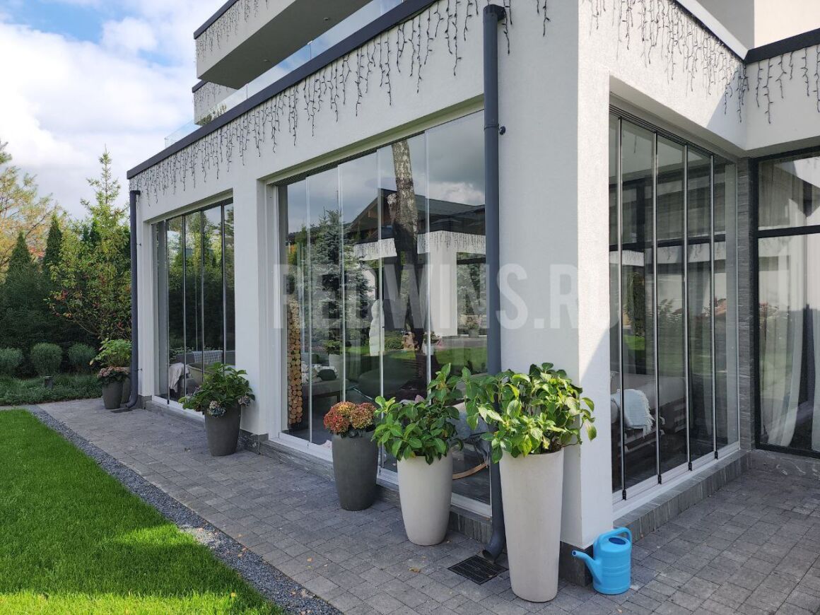 Нестандартная высота 3200мм. Безрамное остекление террасы системой Книжка.