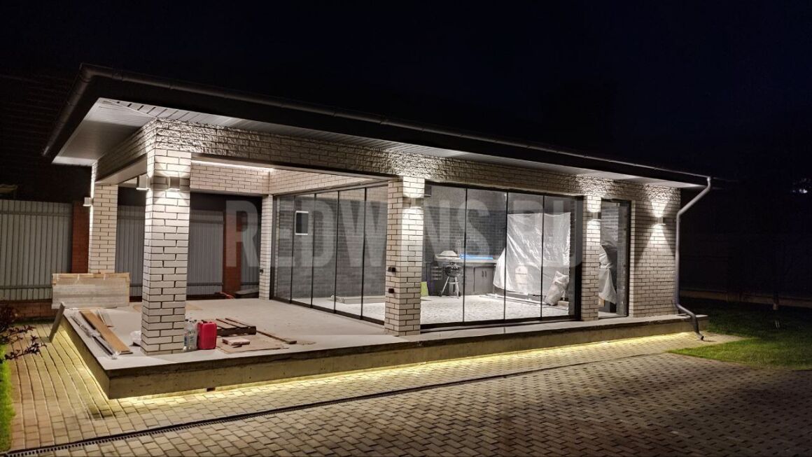 Безрамное остекление летней кухни системой Книжка и Слайд.