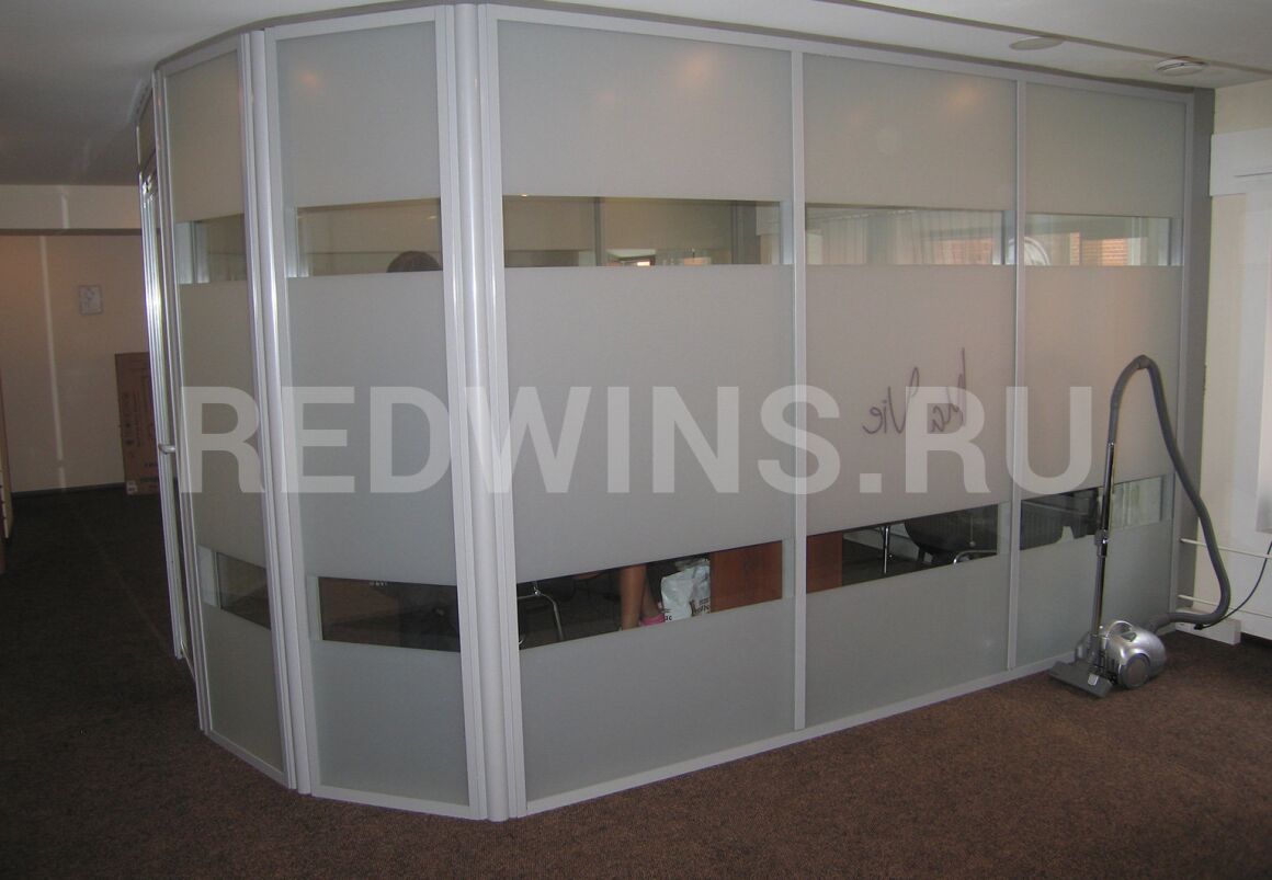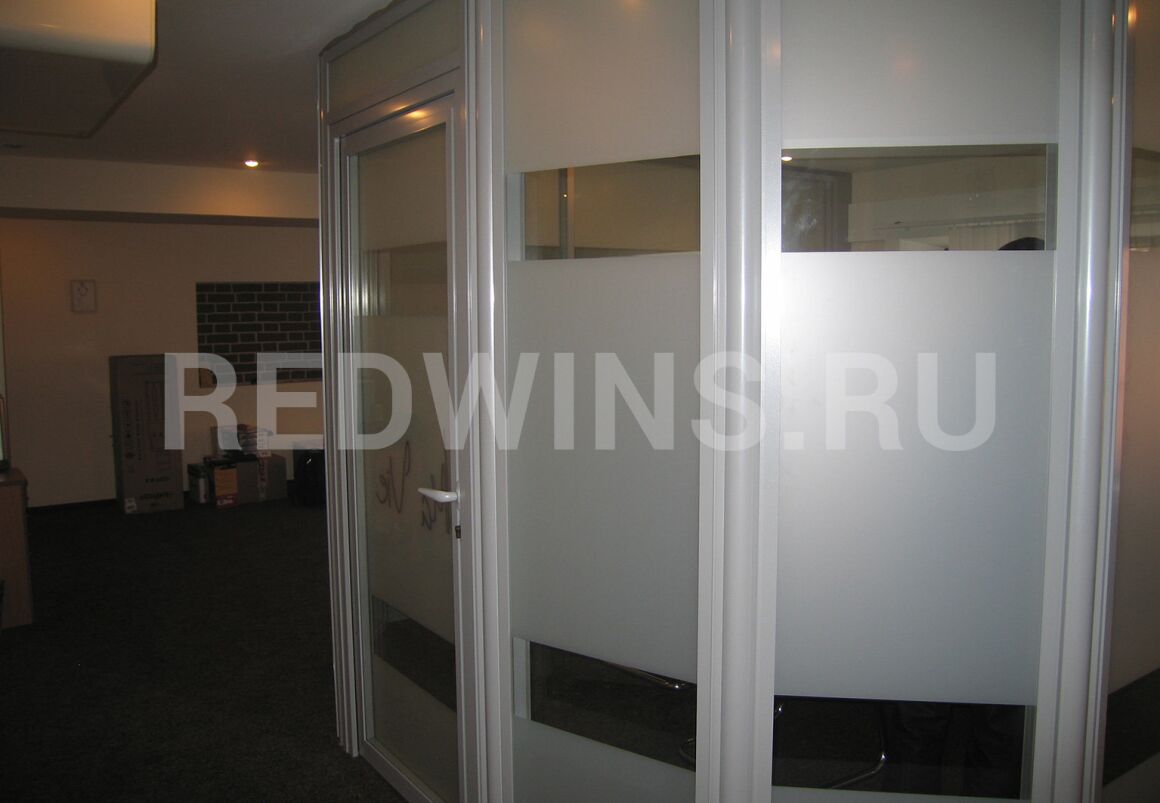 Офисные перегородки. Алюминиевый профиль. Стекло оклеено пленкой.