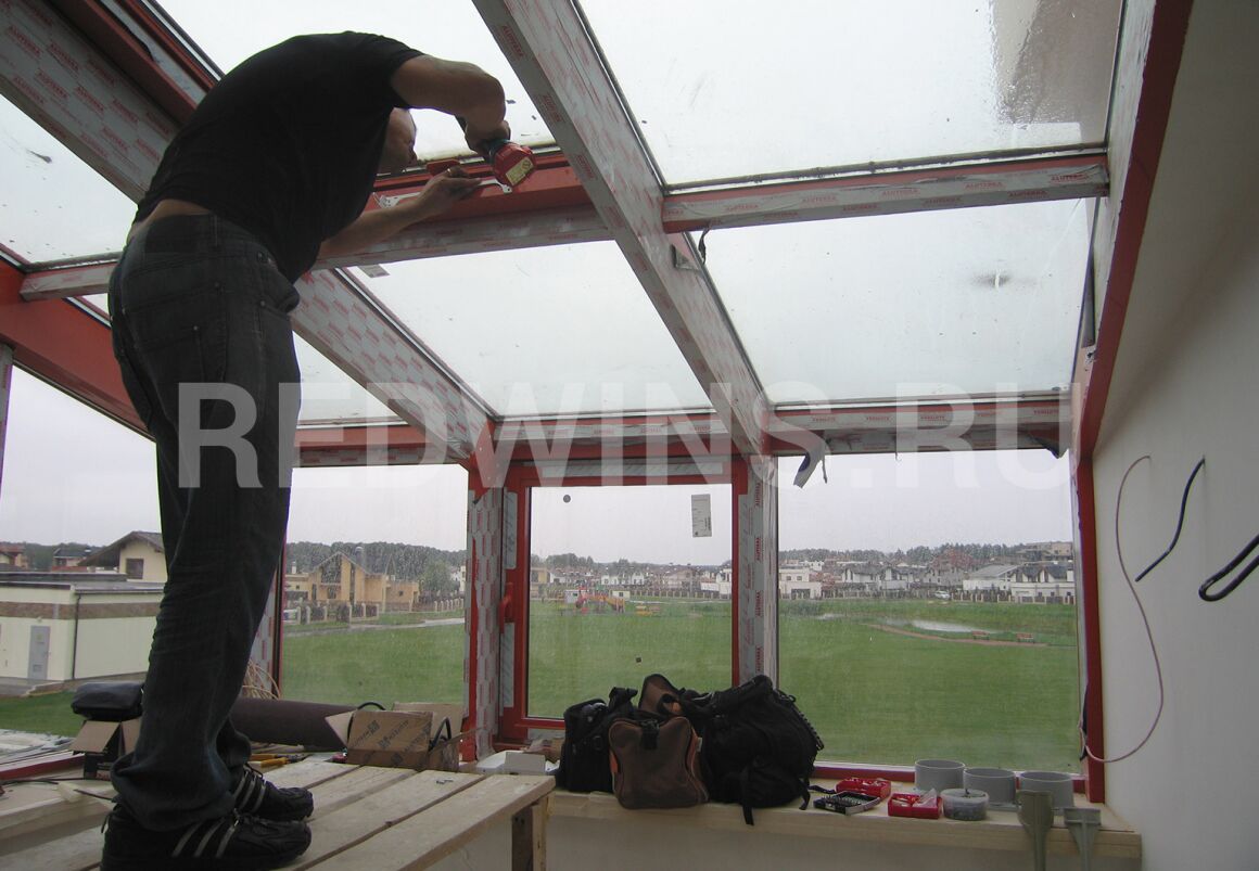 Зимний сад на террасе второго этажа. Тёплый алюминий.